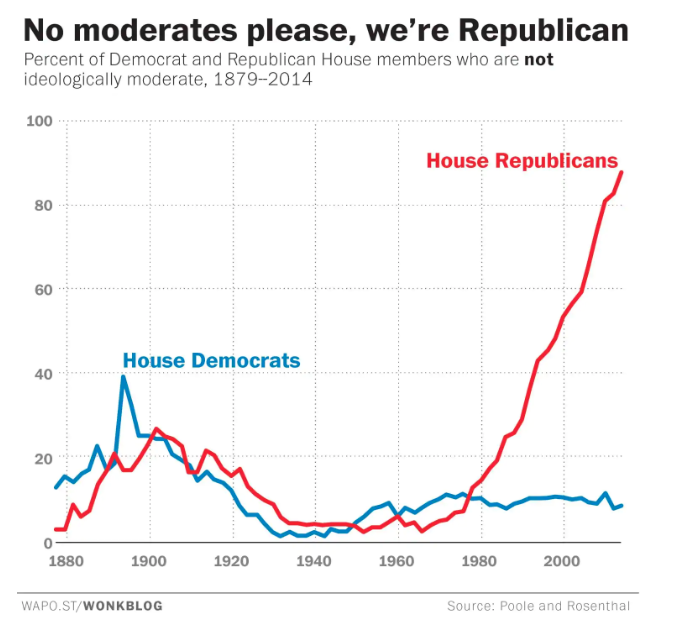 As the Republican Party has gone off the rails in the Obama era, this has led to a deeper and deeper stretch of both siderism logic. For instance, Amy Chua, writing in The Atlantic about the decline of democracy, equates Trump threatening to revoke people’s citizenship and strip them of their voting rights with college students asking a university to stop venerating a slave-owning Founding Father. But one of these fundamentally alters the realities of American political life for decades; the other is a campus debate over a statue.